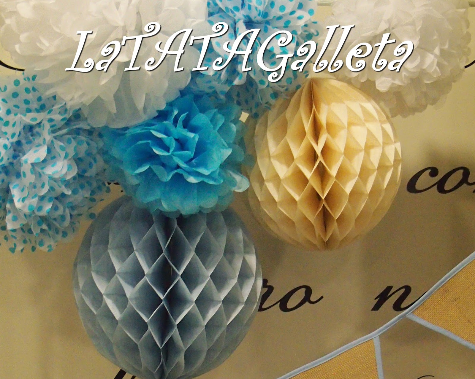 Chuches variadas al gusto de Marcos, bolitas y canutillos de chocolate crujiente, donetes. Y no podían faltar galletas. Galletas personalizadas con su inicial y otras decoradas en puntos blancos con técnica "wet on wet".